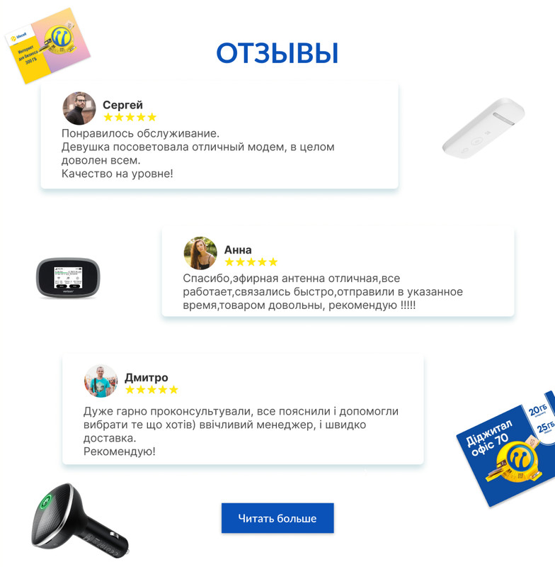Подключаясь к 3G/4G интернету, не стоит забывать и о том, что самую главную роль в нем играет – оператор, который предоставляет Вам доступ в сеть. На сегодняшний день, лидерами 3G/4G связи являются Kyivstar, Vodafone, Lifecell. GSM операторы покрывают большую часть нашей страны и предлагают не только множество доступных и удобных тарифов, но и самый быстрый стандарт подключения, обеспечивающий скорость до 300 Мбит/сек. В случае проживания в удаленной местности или зоне с плохим приемом сигнала, можно использовать LTE MIMO антенны, усиливающие сигнал 3G/4G и его скорость в несколько раз.